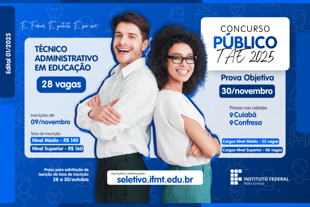O concurso oferece oportunidades em diversos níveis de escolaridade e campi do IFMT.