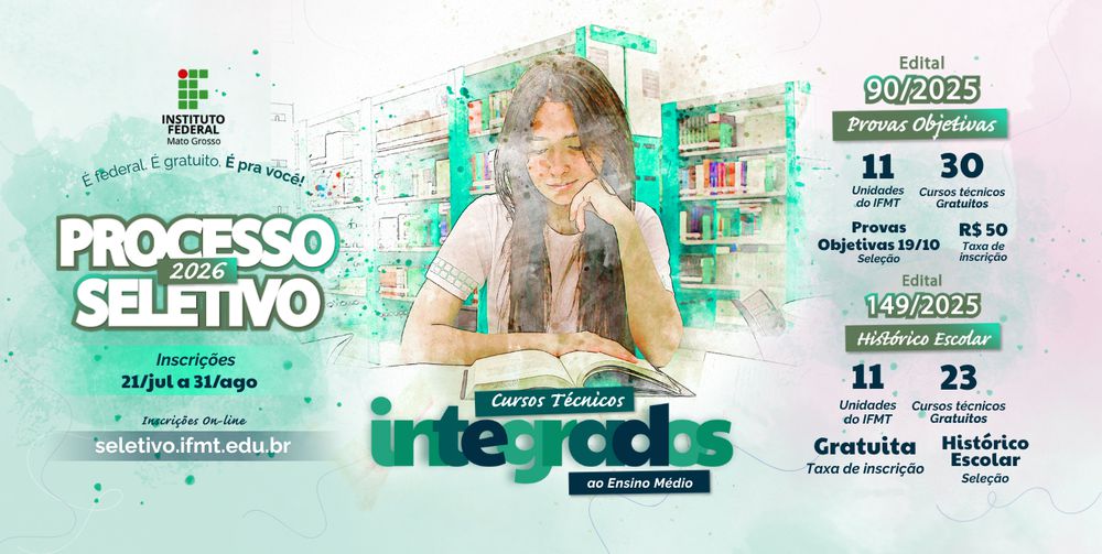 O Instituto Federal de Mato Grosso (IFMT) lançou o maior processo seletivo para cursos técnicos integrados ao ensino médio, com ingresso previsto para 2026