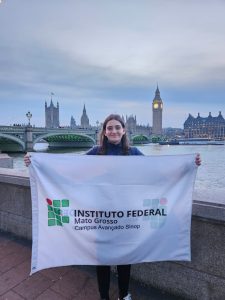A ex-aluna participou de um intercâmbio ofertado pelo IFMT. Ela juntamente com o colega de turma, João Paulo Volpini Rialto foram para Londres, na Inglaterra em fevereiro de 2025. O intercâmbio durou 15 dias foi todo custeado pelo IFMT, passagens e estadia.