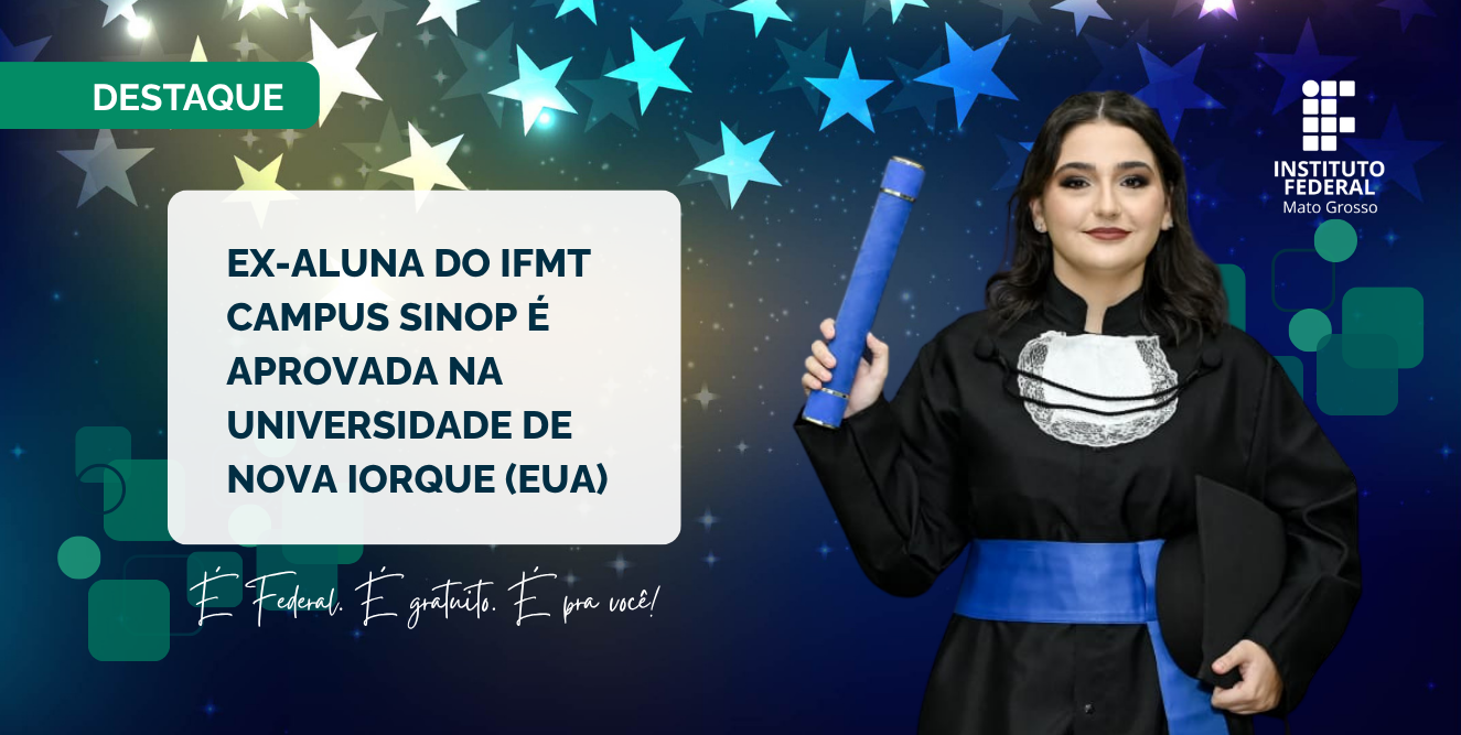 A ex-aluna do IFMT Campus Sinop do curso técnico integrado em Automação Industrial, Maria Rita Dalolio Maldaner, foi aprovada na Universidade de Nova Iorque (New York University) para estudar na Escola de Engenharia Tandon. As aulas estão previstas para começar em janeiro de 2027. A ex-aluna atualmente está cursando Engenharia Elétrica na Universidade Federal de Viçosa (UFV) em Minas Gerais. Ela passou na UFV na nona colocação, em ampla concorrência, de 20 vagas ofertadas.