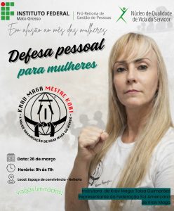 Uma delas será o curso presencial de defesa pessoal para mulheres, que será realizado no dia 26 de março de 2026, das 9h às 11h, na Reitoria. Serão disponibilizadas 20 vagas, destinadas às servidoras interessadas em participar da atividade. As inscrições poderão ser realizadas a partir do dia 9 de março, por meio do preenchimento de formulário eletrônico.